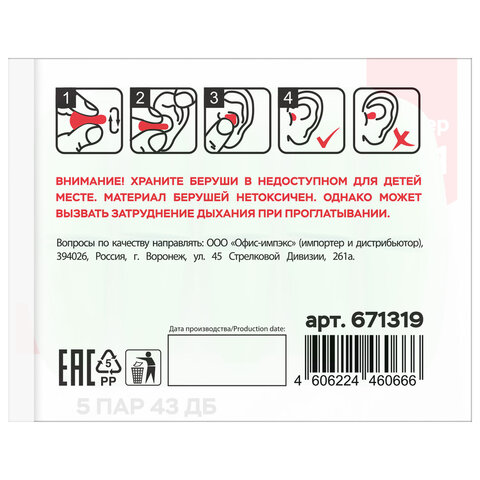 Купить Беруши одноразовые пенополиуретановые без шнурка, КОМПЛЕКТ 5 пар в контейнере, SNR 43 дБ, RABBITEX (РАББИТЕКС), 671319 вы можете в компании Канцтовары Карандашов, оформив заказ в интернет магазине, или