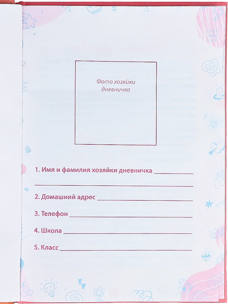 Личный дневник — незаменимая вещь в процессе взросления каждой девочки. С ним можно поделиться самыми сокровенными секретами, интересными событиями, незабываемыми впечатлениями от путешествий, посещений концертов и выставок. Дети могут хорошо развивать свою фантазию, оригинально оформляя свой дневничок: вклеивая фотографии, сделав красивые рисунки, использовав наклейки и т.д. Дневник изготовлен в формате А5, 64 листа, в твёрдом переплёте (7БЦ), который сохранит опрятный внешний вид на долгое время. Цветная мелованная обложка, украшенная глиттером. Размер: 145х200 мм.