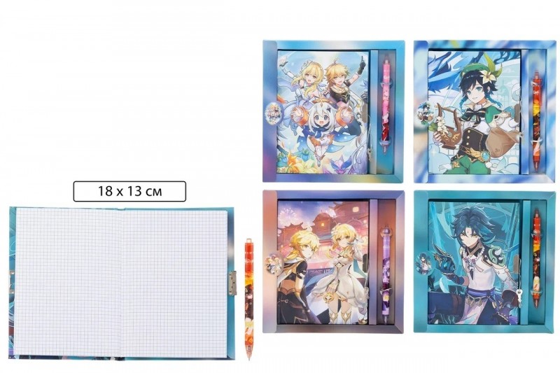 Блокнот детский+замочек+гелевая авторучка: "АНИМЕ"; в подарочной упаковке /21*20,5 см/; гелевая авторучка с рисунком; цветная обложка 7БЦ /ассорти/, блок-клетка, 48 листов; 18*13 см.