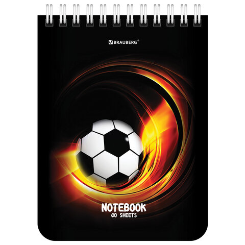 Блокнот МАЛЫЙ ФОРМАТ А6 108х145мм, 40л, гребень, картон, клетка, BRAUBERG, Футбол, 114390