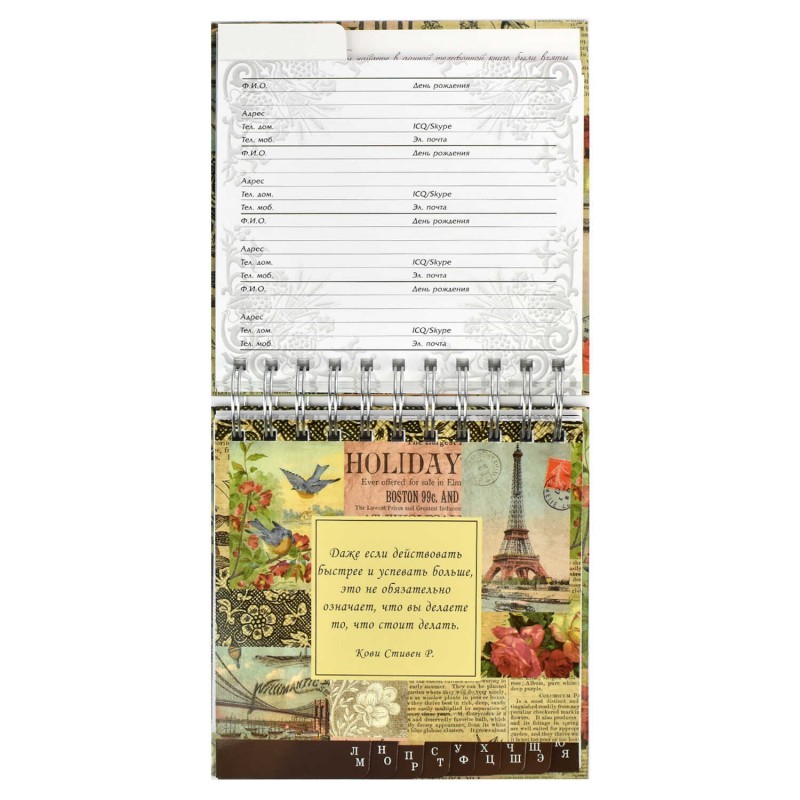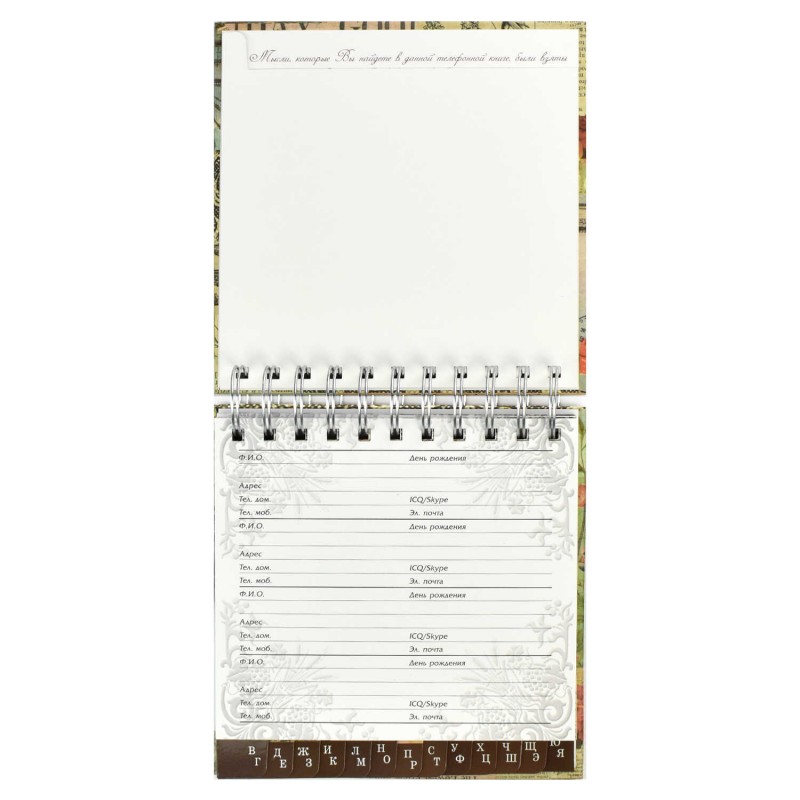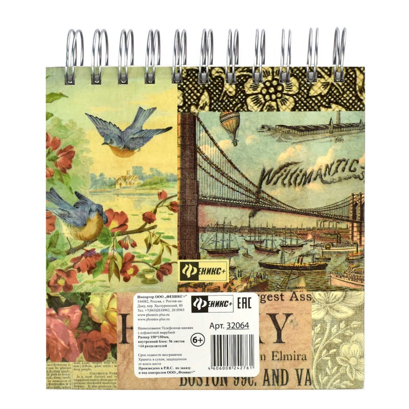Телефонная книжка арт.32064 КОЛЛАЖ(с алфавитной вырубкой, 150*150 мм, 14 разделит, 56 л офсет, евроспираль, обложка 7БЦ, выборУФ-лак)