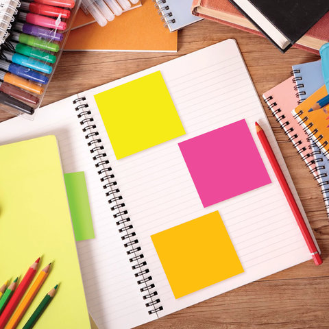 Стикеры 5 неоновых цветов (желтый, розовый, зелёный, оранжевый, малиновый) в форме куба 76×76 мм состоят из 400 листов. Плотность бумаги составляет 75 г/м2. Клейкий слой - 22 Н/м. Легко клеятся к любой поверхности. Не оставляют следов. Упакованы в полиэтиленовую пленку. Чтобы стикеры держались дольше, следуйте рекомендациям по использованию: - Отделяйте листы от блока вдоль клеевой полосы, в горизонтальном направлении. Это поможет избежать скручивания и последующего отклеивания стикера. - Убедитесь в отсутствии пыли и грязи на поверхности для приклеивания. Так вы обеспечите наиболее продолжительный срок службы клеевого слоя.