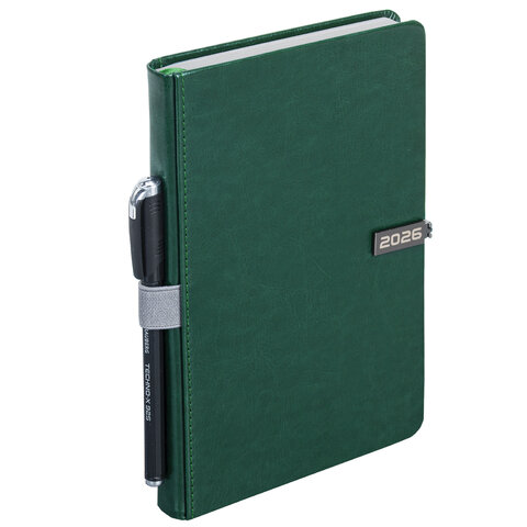 Ежедневник датированный 2026 А5 138x213 мм, BRAUBERG "Inspiration", под кожу, цветной срез, темно-зеленый, 117477