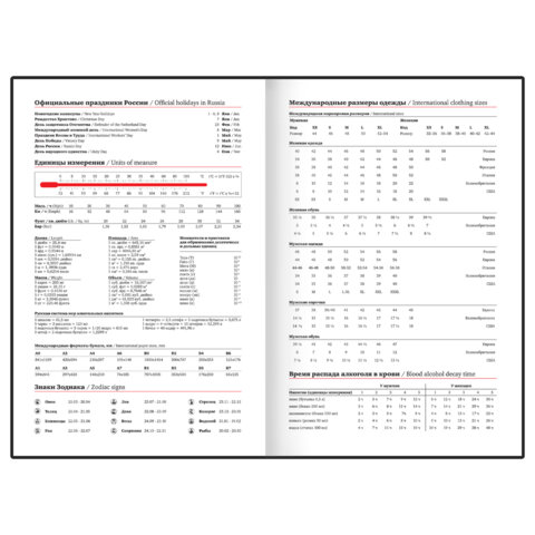 Внутренний блок включает 160 листов белой бумаги плотностью 70 г/м2. Каждая страничка имеет перфорированный угол. Благодаря стандартному формату А5 (145х213мм) ежедневник удобно использовать как в офисе, так и на выездных деловых встречах.
