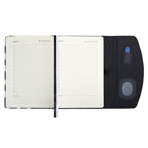 Внутренний блок включает 160 листов кремовой бумаги плотностью 70 г/м2. Благодаря стандартному формату А5 ежедневник удобно использовать как в офисе, так и на выездных деловых встречах.