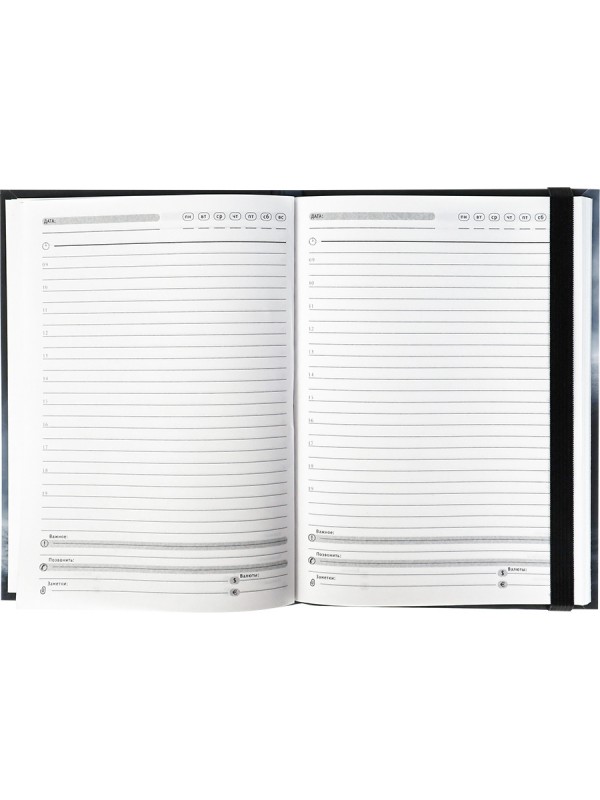 У каждого из нас есть планы на день. А если их много, то лучше их записать. Правильное решение — выбрать ежедневник от компании "Проф-Пресс". Удобный формат А5 (150х204), привлекательный дизайн, твёрдая обложка 7БЦ, декорированная выборочным лаком и покрытием "Cофт-тач". Обложка на чёрном фоне смотрится стильно и элегантно. Внутренний блок — офсет, 128 листов, недатированный. Листы бумаги внутреннего блока выполнены в белом цвете.
