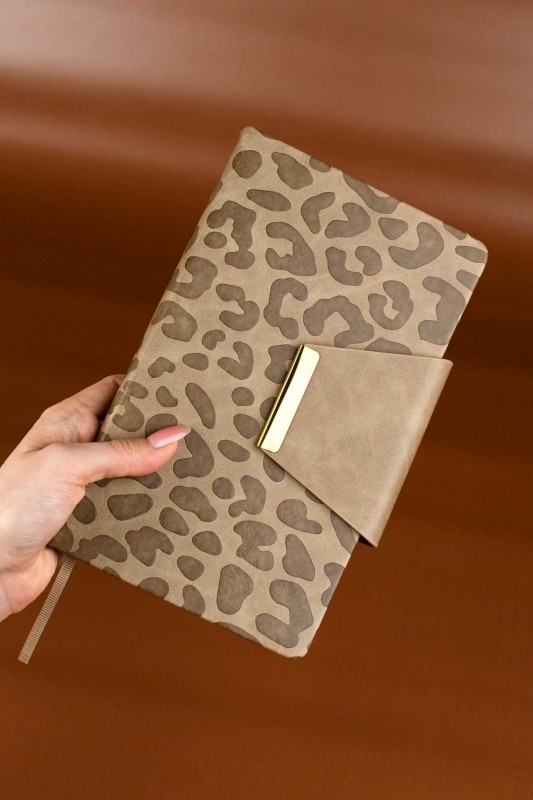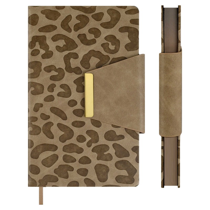 Ежедневник недатированный с резинкой А5 (145х203 мм), BRAUBERG, твердый, фольга, 128 л., "Leopard", 114561