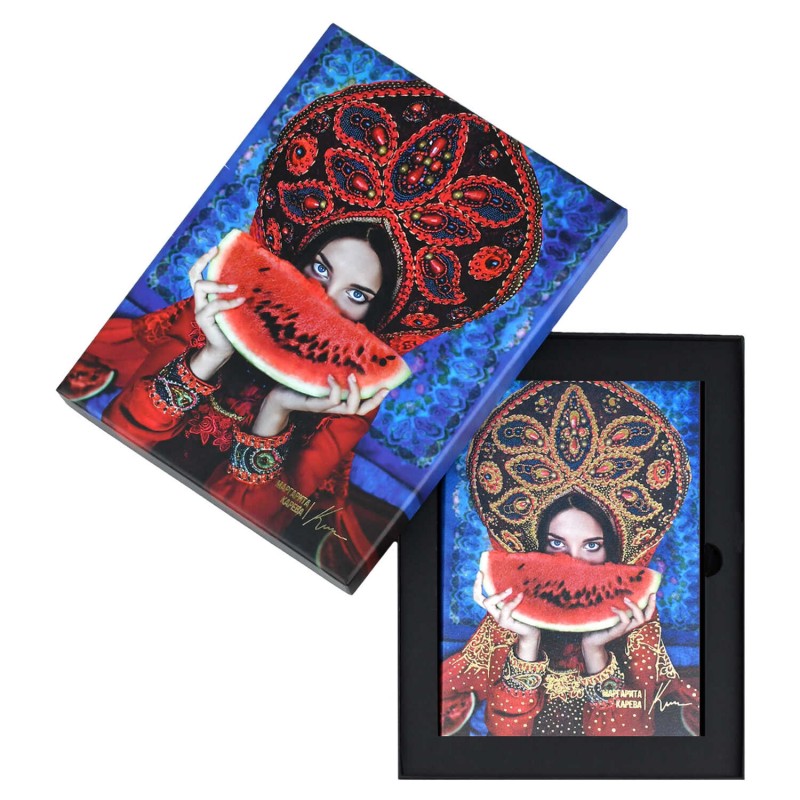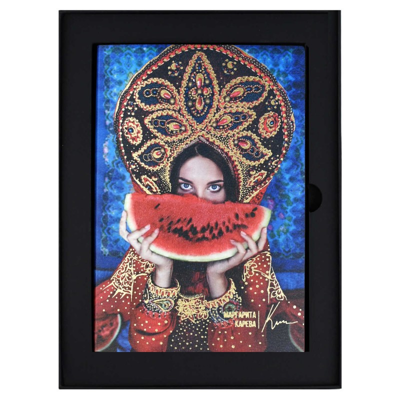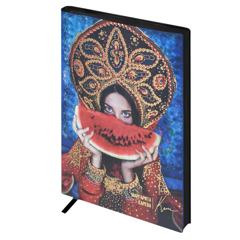 Ежедневник недатированный ESCALADA, #МАРГАРИТА КАРЕВА, А5, 120 л., арт. 70661/ 10 АРБУЗ (кожзам: 146x211 мм, мягкий переплёт, запаянный край, материал обложки: искусственная кожа "Наппа"; способ крепления блока: ниткошвейный; декор: печать полноцветная, тиснение фольгой; вн. блок: 120 л., кремовый офсет 70 г/м², печать в одну краску (линия), справочный материал: есть; перфорация углов блока: нет; отделка среза: окрашивание пантоном; закладка/-и: одно ляссе, каптал: есть; форзац: печать пантоном, особенности: на обложке ежедневника использованы чарующие и невероятно притягательные работы фотохудожницы мирового уровня, чьи фотографии в стиле фэнтези попали на обложку модного журнала Runway и страницы The Times, - Маргариты Каревой; персонализация возможна: нет; индивидуальная упаковка: подарочная картонная коробка + ПЭТ-пакет)