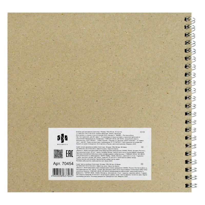 Альбом для рисования (Скетчпад) 195х195 мм, 40 л, блок - белый офсет 100 г/м², арт. 70454 РЫЖЕНЬКАЯ С КОШЕЧКОЙ /обложка полноцветная печать, гребень п