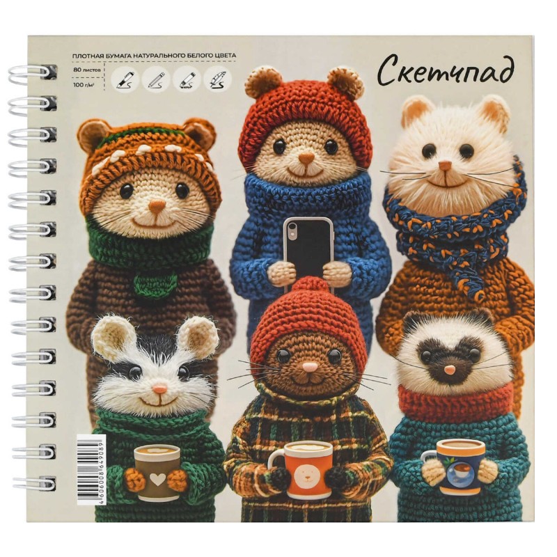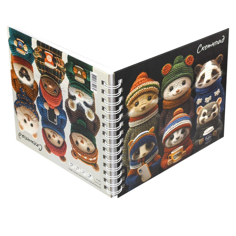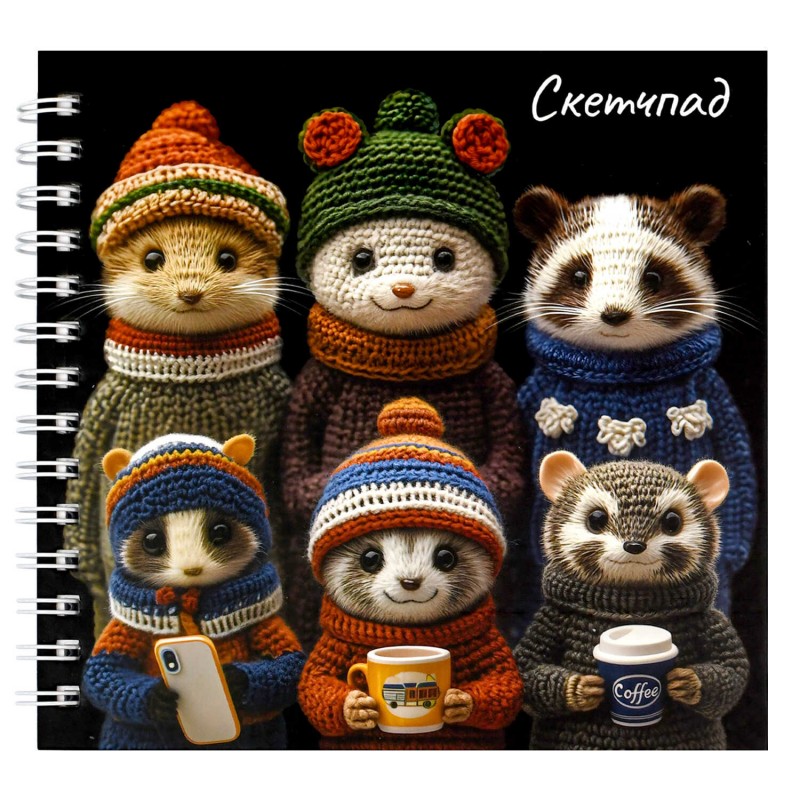 Купить Альбом для рисования (Скетчпад) 195x195 мм, 80 л, блок - белый офсет 100 г/м², арт. 71629 ВЯЗАНЫЕ ЗВЕРИ /обложка полноцветная печать, твёрдый переплёт вы можете в компании Канцтовары Карандашов, оформив заказ в интернет магазине, или