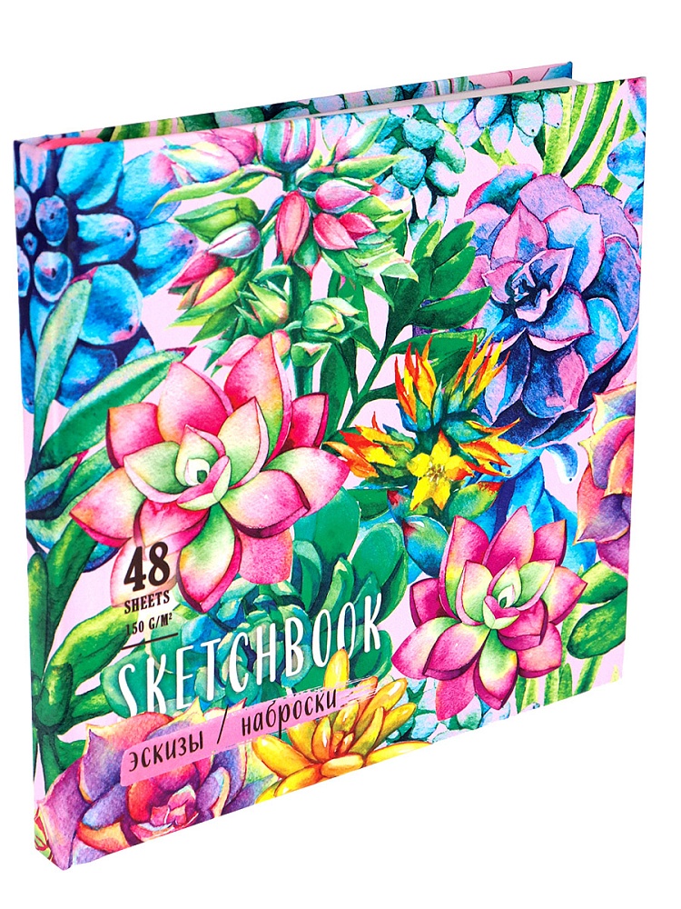 Купить Скетчбук 48л. ФЕЕРИЯ СУККУЛЕНТОВ (48-0581) 7БЦ, матовая ламинация, ляссе, лен, резинка, 165х165мм вы можете в компании Канцтовары Карандашов, оформив заказ в интернет магазине, или