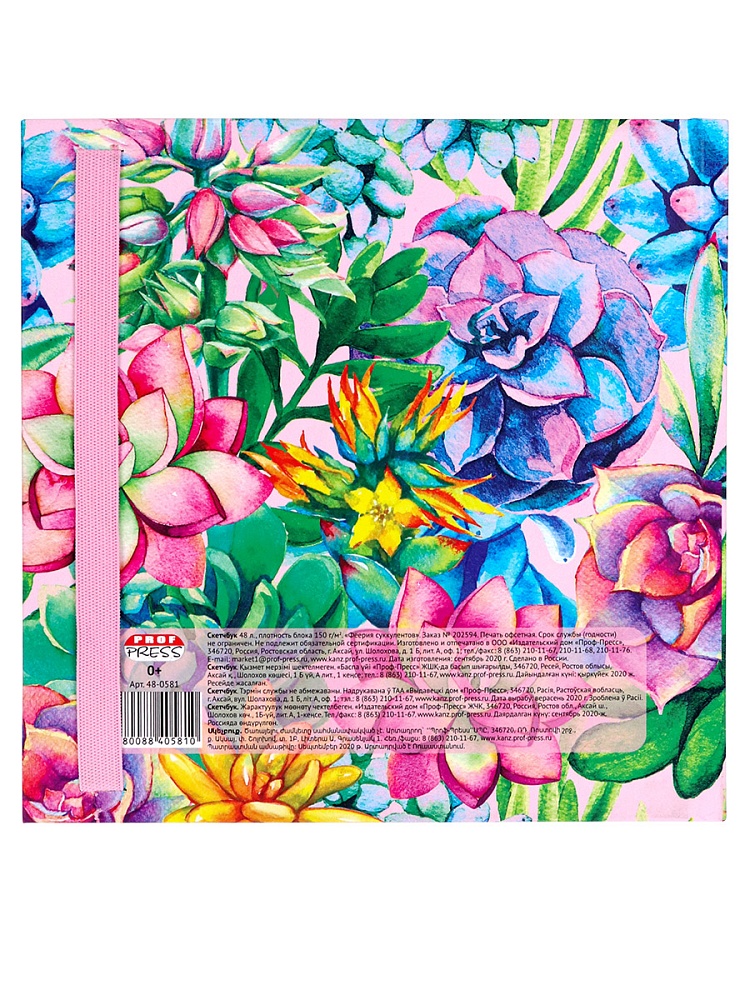 Скетчбук 48л. ФЕЕРИЯ СУККУЛЕНТОВ (48-0581) 7БЦ, матовая ламинация, ляссе, лен, резинка, 165х165мм