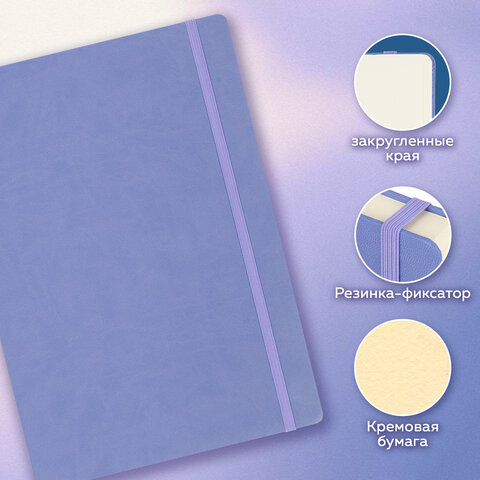 Скетчбук, слоновая кость 140 г/м2 210х297 мм, 80 л., КОЖЗАМ, резинка, BRAUBERG ART CLASSIC, пастель сиреневый, 116883