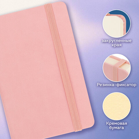 Скетчбук, слоновая кость 140 г/м2 90х140 мм, 80 л., КОЖЗАМ, резинка, BRAUBERG ART CLASSIC, пастель розовый, 116874