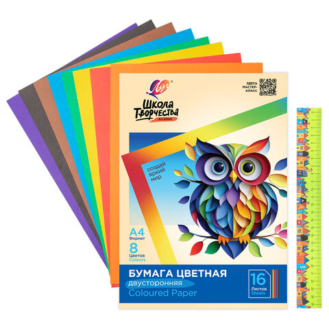 Набор цветной двусторонней бумаги "Школа творчества": 8 цветов, 16 листов.