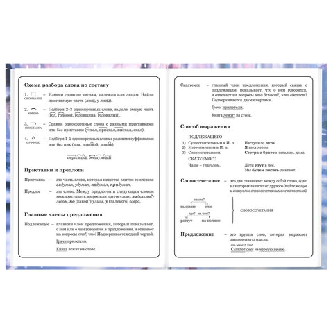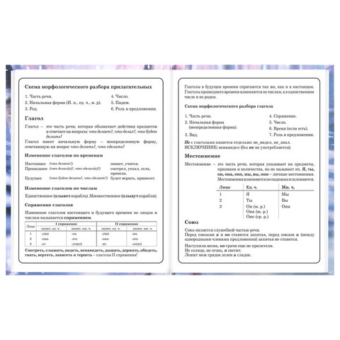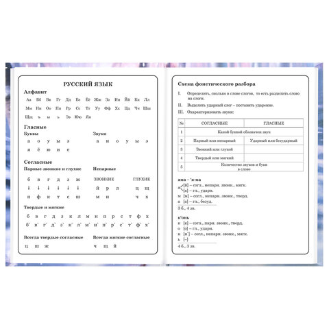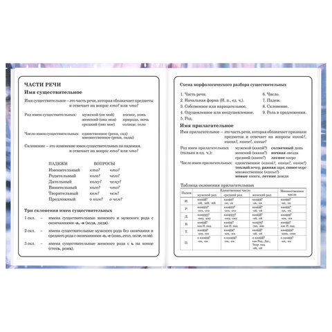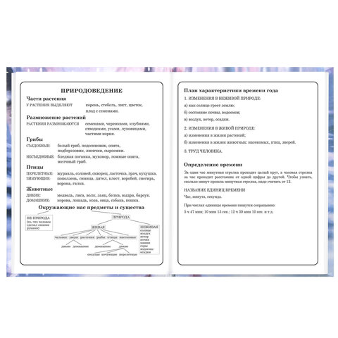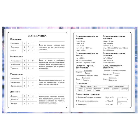 Предназначен для учащихся начальных классов. Твердая обложка надежно защищает бумагу и долго сохраняет привлекательный внешний вид. Изображения с помощью спецэффекта "глянцевая ламинация" становятся более яркими и насыщенными, исключается возможное истирание рисунка. Внутренний блок содержит 48 листов и состоит из офсетной белой бумаги плотностью 60 г/м2. В справочном материале собраны основные подсказки для учащихся.
