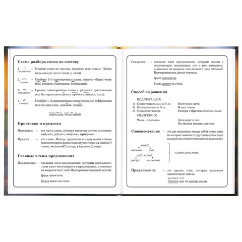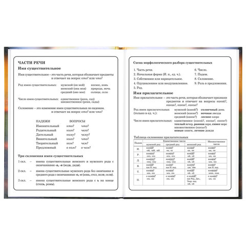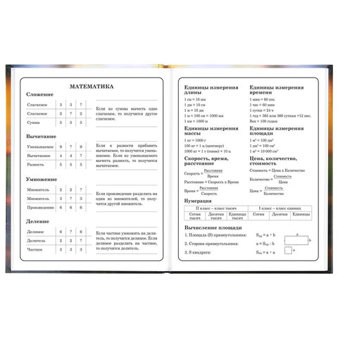 Предназначен для учащихся начальных классов. Твердая обложка надежно защищает бумагу и долго сохраняет привлекательный внешний вид. Изображения с помощью спецэффекта "глянцевая ламинация" становятся более яркими и насыщенными, исключается возможное истирание рисунка. Внутренний блок содержит 48 листов и состоит из офсетной белой бумаги плотностью 60 г/м2. В справочном материале собраны основные подсказки для учащихся.
