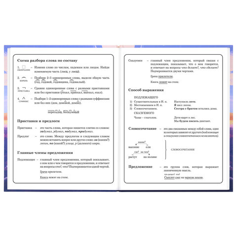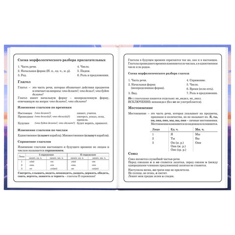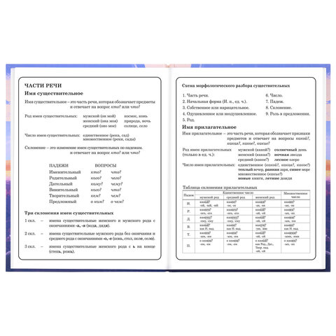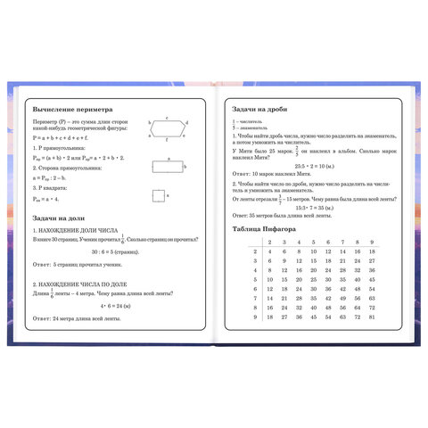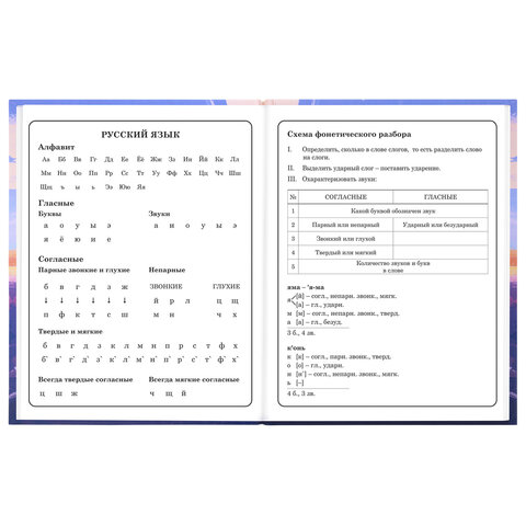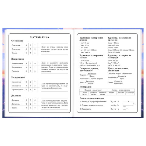 Предназначен для учащихся начальных классов. Твердая обложка надежно защищает бумагу и долго сохраняет привлекательный внешний вид. Спецэффект "матовая ламинация с выборочным лаком" придает глубину изображению и предотвращает образование бликов на поверхности. Внутренний блок содержит 48 листов и состоит из офсетной белой бумаги плотностью 60 г/м2. В справочном материале собраны основные подсказки для учащихся.
