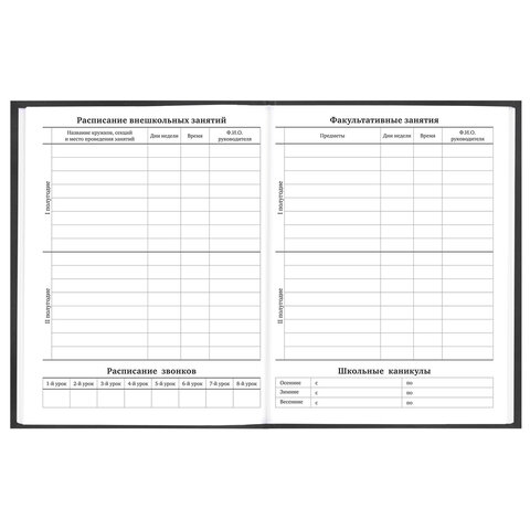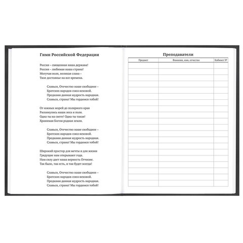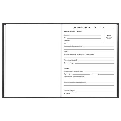 Предназначен для учащихся 5-11 классов. Твердая обложка надежно защищает внутренний блок и долго сохраняет привлекательный внешний вид. Спецэффект "матовая ламинация с выборочным лаком" придает глубину изображению, не позволяет образовываться бликам на изделии. Внутренний блок содержит 48 листов офсетной белой бумаги плотностью 60 г/м2. Дневник снабжен полезным справочным материалом для учащихся.