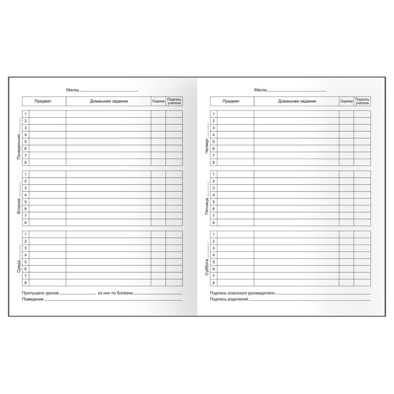 Школьный дневник BG в твёрдом переплёте – главный помощник школьника в планировании учебного и свободного времени, с которым также можно следить за успеваемостью. Количество листов внутреннего блока – 40. Дневник подойдет для учащихся с 1 по 11 класс. Плотность офсетной белой бумаги внутреннего блока составляет 60-65 г/кв.м, белизна – 100%. Печать блока в 1 краску (чёрный цвет). Тип скрепления – сшивка. Количество уроков – 8. Твёрдая обложка с прямыми уголками (7БЦ) выполнена из мелованного картона с матовой ламинацией. Дневник содержит 4 страницы для личных данных.
