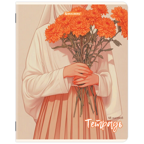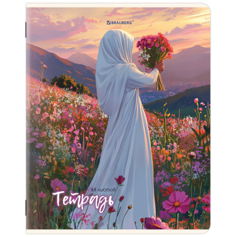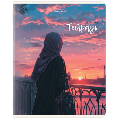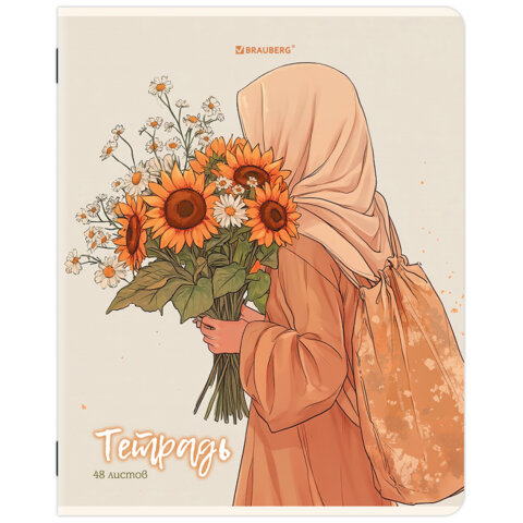 Тетрадь А5, 48 л., BRAUBERG, скоба, клетка, матовая ламинация, "Восточная девушка" (микс в спайке), 405647
