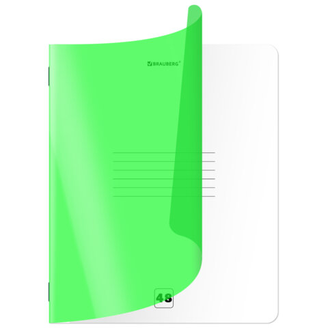 Тетрадь пластиковая обложка (НЕОН) А5, 48 листов, скоба, клетка, BRAUBERG "Smart Cover", ЗЕЛЕНАЯ, 405038