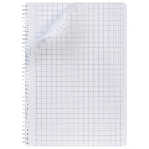 Тетрадь А4 формата, 96 листов. Материал обложки – мелованный картон. Вид отделки – ламинация Soft-touch. Внутренний блок – офсетная бумага 65 г/м2, клетка. Перфорация на отрыв. Тип скрепления – гребень.