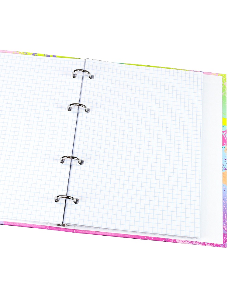 На протяжении всего обучения в школе главным помощником для учащегося является тетрадь! Тетрадь школьная изготовлена на кольцах с твёрдой обложкой из ламинированного картона. Сменный внутренний блок изготавливается из высококачественной бумаги в формате А5+ (165х215 мм) (80 листов), в клетку. Крепление "на кольцах" позволяет менять или добавлять листы при необходимости. Красочная обложка с глянцевой ламинацией декорирована методом каландрирования (обработкой "Лён"). Оригинальные рисунки, насыщенные цвета и запоминающиеся принты будут оценены каждым учеником по достоинству. Подходит для использования в школах, высших учебных заведениях, для дома и офиса.