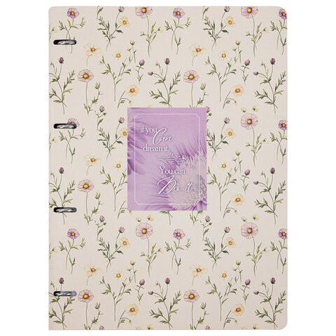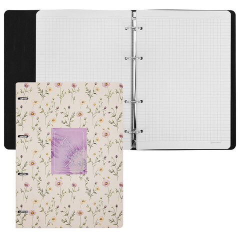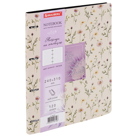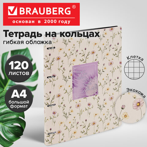 Тетрадь на кольцах БОЛЬШАЯ А4, 240х310 мм, 120 л., под кожу, BRAUBERG VISTA, "Пастельные цветы", 405204