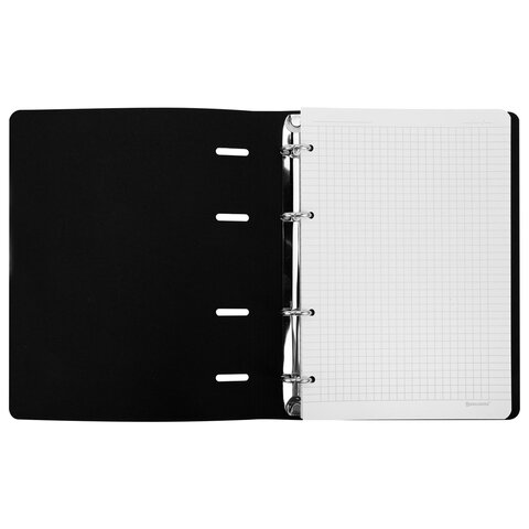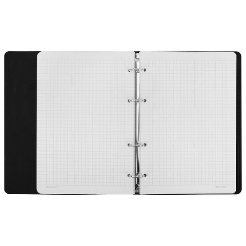 Блок состоит из 120 листов офсетной бумаги белого цвета плотностью 70 г/м2. Линовка – клетка с полями. Гибкая обложка из экокожи с вырубкой под кольца выполнена из износоустойчивого материала с текстурой под гладкую кожу. Увеличенный формат А4 предназначен для ведения большого объема записей. Кольцевой механизм позволяет легко сменить внутренний блок на новый, не покупая при этом новую тетрадь. Одна такая тетрадь способна заменить несколько небольших тетрадей для разного рода информации.