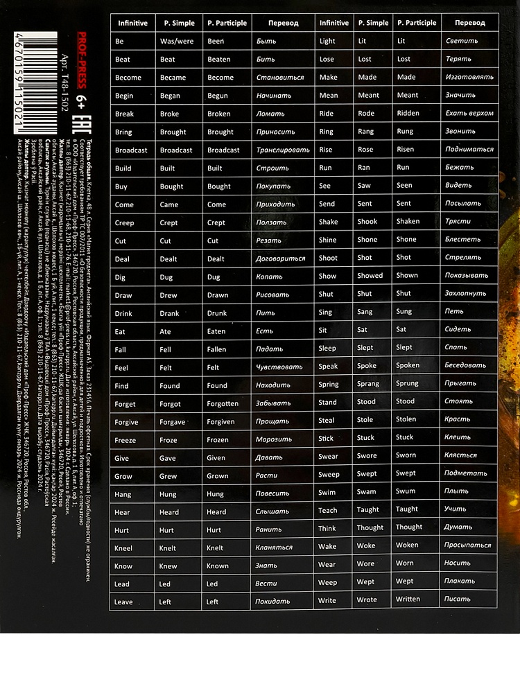 Магическое мерцание фольги и блеск твин-лака на отдельных элементах обложки особенно эффектно выглядит на черном фоне. Внутри расположен справочный материал с подсказками по соответствующему школьному предмету. Обложка: мелованный целлюлозный картон, печать по холодной фольге, твин-лак. Внутренний блок: офсет 60 г/м 100 % белизны, 48 листов. Линовка: клетка.