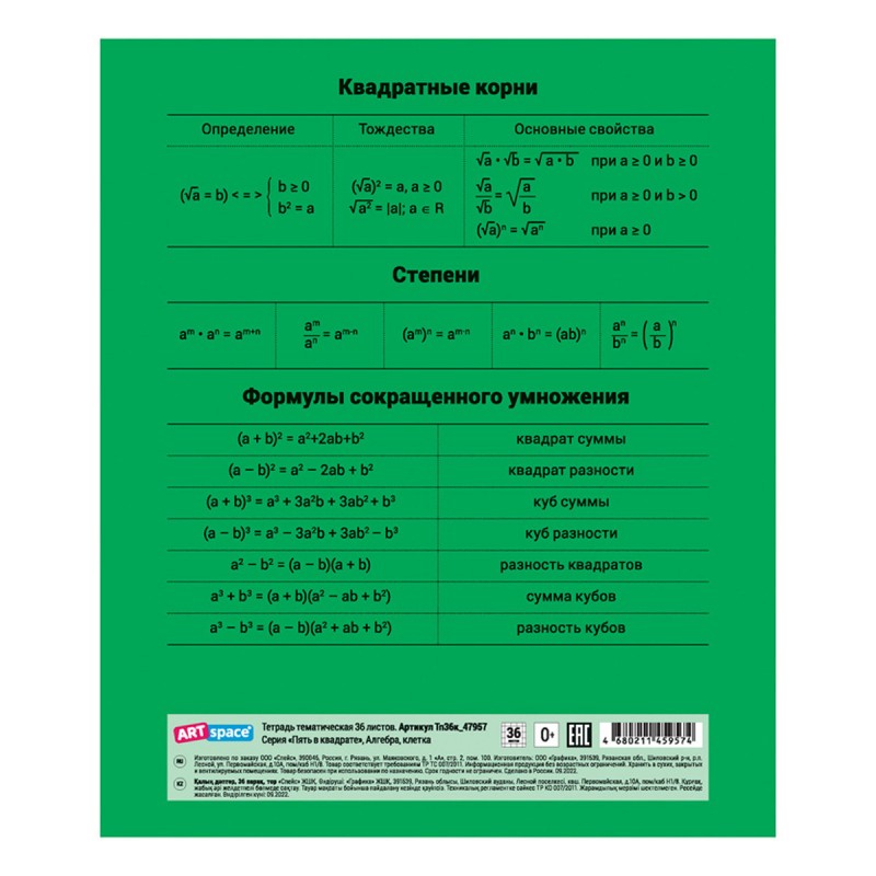 Тетрадь предметная 36л. ArtSpace "Пять в квадрате" - Алгебра, эконом Тп36к_47957