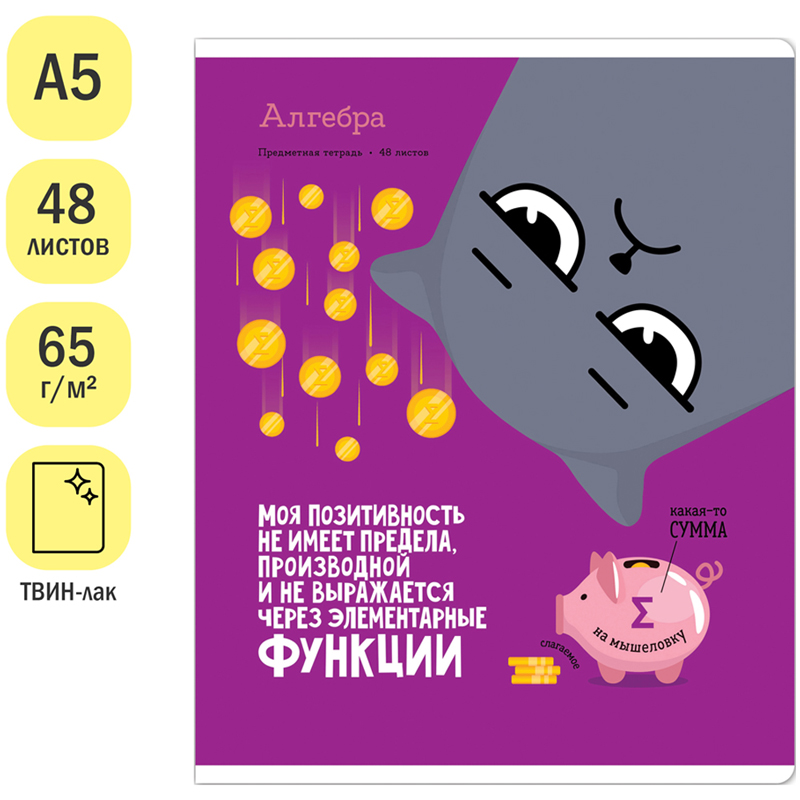 Купить Тетрадь предметная 48л. ArtSpace "Котоцинизм" - Алгебра, ТВИН-лак вы можете в компании Канцтовары Карандашов, оформив заказ в интернет магазине, или
