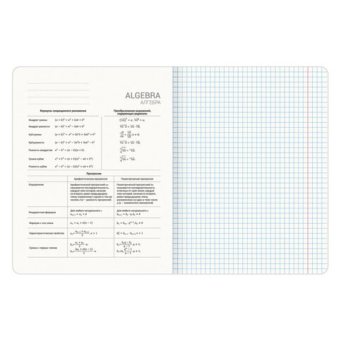 Тетради содержат 48 листов, изготовленных из высококачественной офсетной бумаги плотностью 60 г/м2 и 100% белизны, с красными полями. Листы соединены скобами. Обложка изготовлена из мелованного картона. Спецэффект "TWIN-лак" придает изображениям оригинальность и выразительность. В справочном материале собраны основные подсказки по школьному предмету.