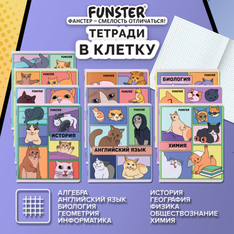 Купить Тетради предметные, КОМПЛЕКТ 12 ПРЕДМЕТОВ, 48 л., TWIN-лак, FUNSTER (ФАНСТЕР), МЕМНЫЕ КОТЫ, 405604 вы можете в компании Канцтовары Карандашов, оформив заказ в интернет магазине, или