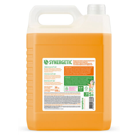Средство для мытья пола и поверхностей 5 л SYNERGETIC, c дезинфицирующим эффектом, биоразлагаемое