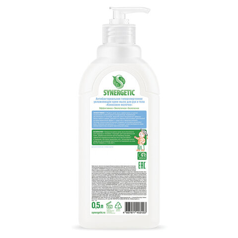 Купить Крем-мыло 500 мл, SYNERGETIC "Кокосовое молочко", антибактериальное, биоразлагаемое, дозатор, 105062 вы можете в компании Канцтовары Карандашов, оформив заказ в интернет магазине, или