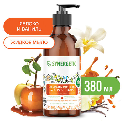Купить Мыло жидкое 380 мл, SYNERGETIC "Карамельное яблоко и ваниль", биоразлагаемое, дозатор, 105004 вы можете в компании Канцтовары Карандашов, оформив заказ в интернет магазине, или