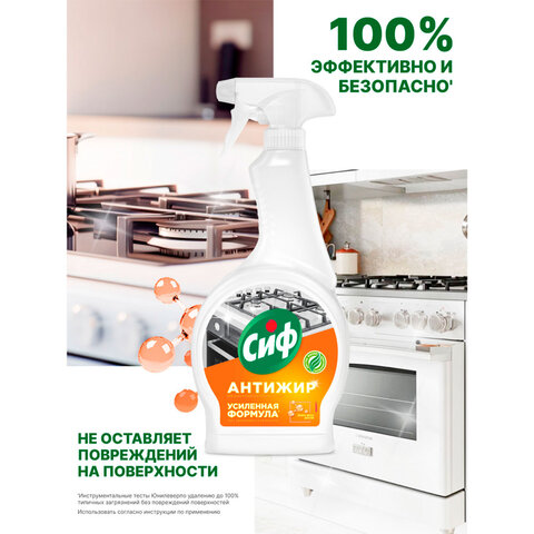 Средство от жира на кухне СИФ удаляет до 100% наиболее стойких бытовых загрязнений.