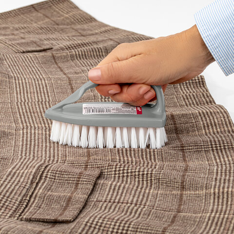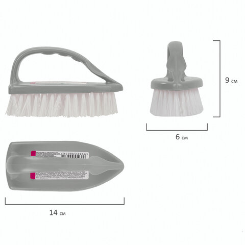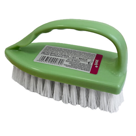 Имеет удобную ручку с профилированным упором для большого пальца. Упругая щетина эффективно очищает поверхность от загрязнений. Поставляется в нескольких вариантах цвета (без возможности выбора).