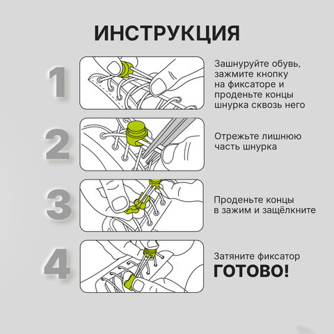 1. Зашнуруйте обувь и вставьте шнурок в фиксатор.
