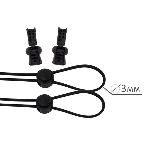 Шнурки круглые эластичные ЧЕРНЫЕ длина 100 см, диаметр 5 мм, 2 капсулы черного цвета, SHEGRA (ШЕГРА), 701715