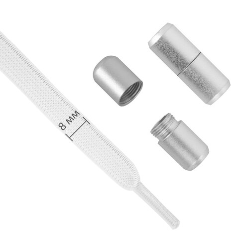 Шнурки плоские эластичные БЕЛЫЕ, длина 100 см, ширина 8 мм, 2 капсулы серебристого цвета, SHEGRA (ШЕГРА), 701707