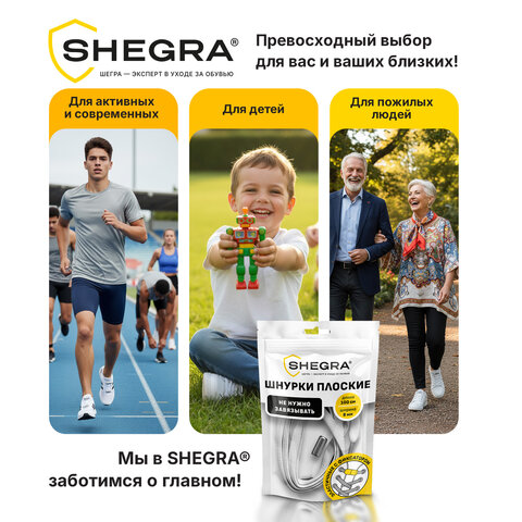 Шнурки плоские эластичные СЕРЫЕ длина 100 см, ширина 8 мм, 2 капсулы серебристого цвета, SHEGRA (ШЕГРА), 701710