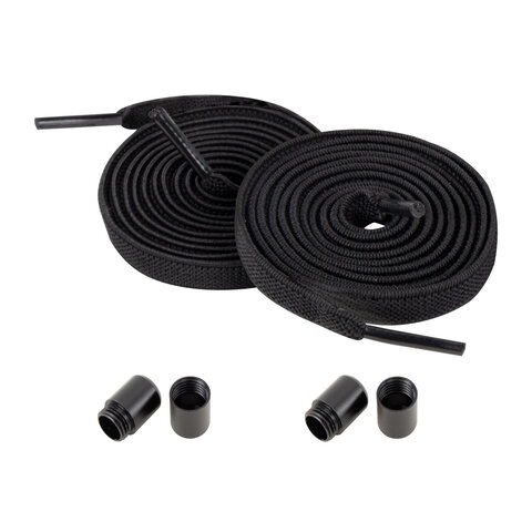 Шнурки плоские эластичные ЧЕРНЫЕ длина 100 см, ширина 8 мм, 2 капсулы черного цвета, SHEGRA (ШЕГРА), 701708