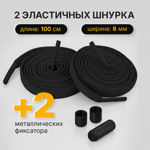 Купить Шнурки плоские эластичные ЧЕРНЫЕ длина 100 см, ширина 8 мм, 2 капсулы черного цвета, SHEGRA (ШЕГРА), 701708 вы можете в компании Канцтовары Карандашов, оформив заказ в интернет магазине, или