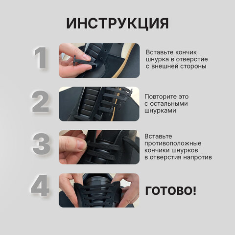 Отлично подходят как для взрослых так и для детей, не развязываются и предотвращают падения. Стильный черный цвет и лаконичный дизайн делают их универсальным аксессуаром для любой обуви.