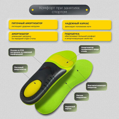 Стельки для обуви с АМОРТИЗИРУЮЩИМИ ВСТАВКАМИ, материал EVA, размер RU 38-44 / EU 39-45, с линиями выреза, SHEGRA (ШЕГРА), 700751