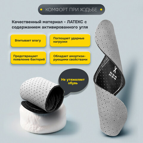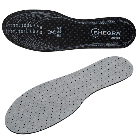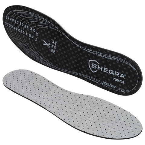 Купить Стельки для обуви с АКТИВИРОВАННЫМ УГЛЕМ, УНИВЕРСАЛЬНЫЙ размер RU 34-45 / EU 35-46, с линиями выреза, SHEGRA (ШЕГРА), 700731 вы можете в компании Канцтовары Карандашов, оформив заказ в интернет магазине, или