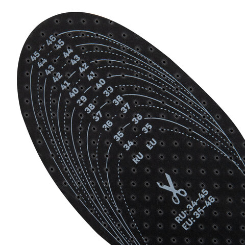 Стельки для обуви с АКТИВИРОВАННЫМ УГЛЕМ, УНИВЕРСАЛЬНЫЙ размер RU 34-45 / EU 35-46, с линиями выреза, SHEGRA (ШЕГРА), 700731